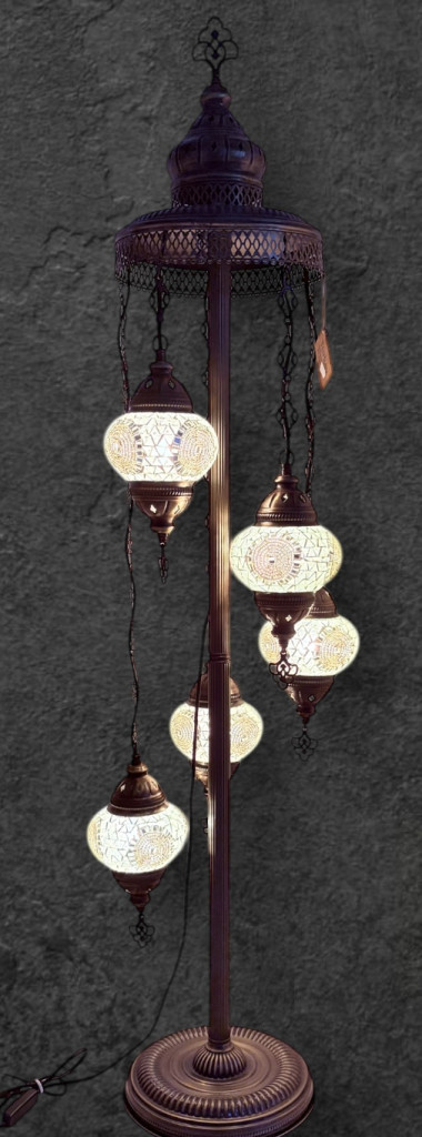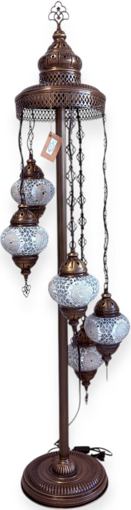 Spirál mozaik állólámpa 5 gömbös-fehér karikás