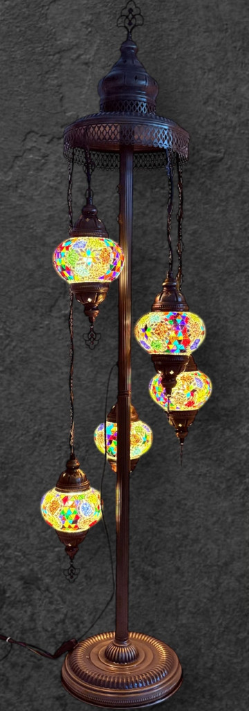 Spirál mozaik állólámpa 5 gömbös- karikás